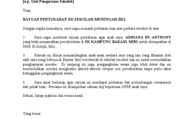 Cara Buat Surat Rayuan Sekolah Contoh 84 Otosection